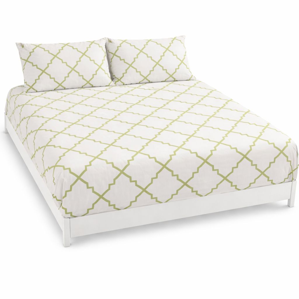Bed Sheet with 2 Pillow Cases- White & Green 210 TC